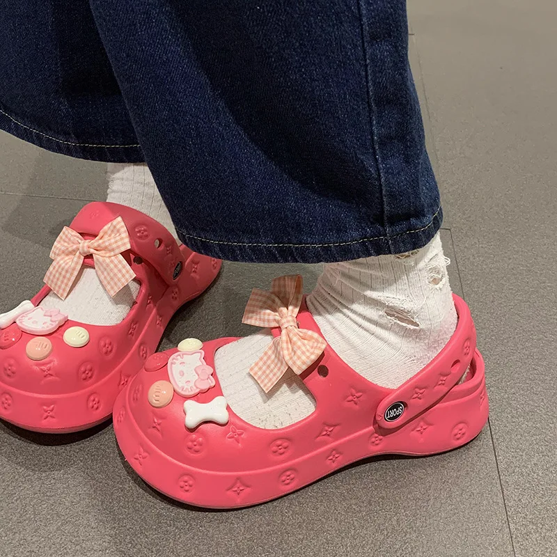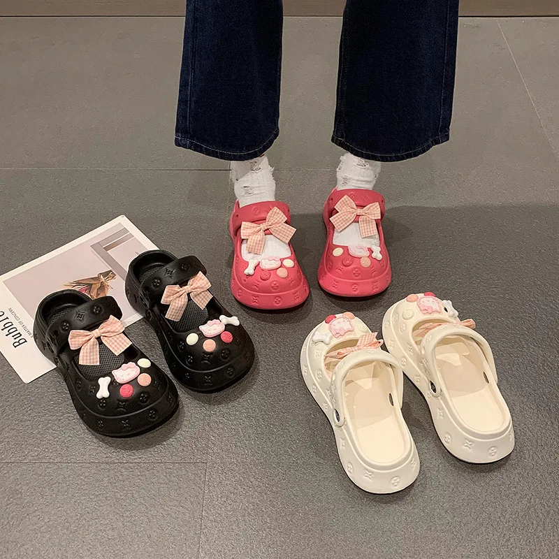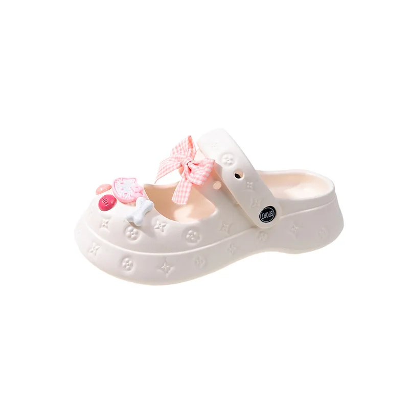 2023 New Girls Summer Wear Indoor Beach Slippers Fashion Cute Pearl Bow Buckle Slippers