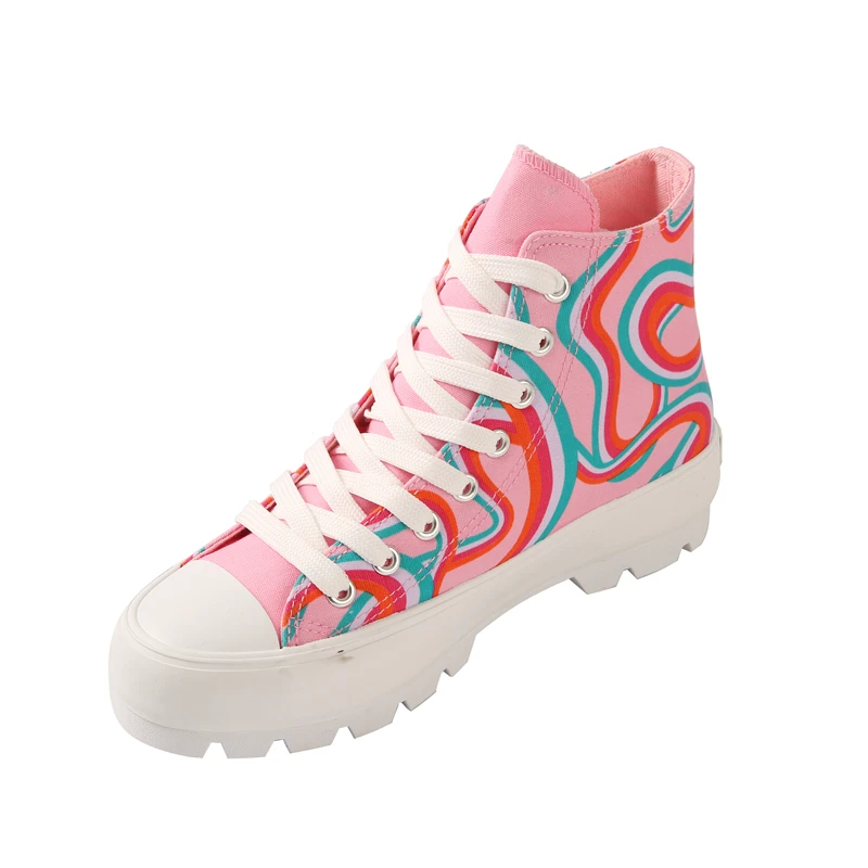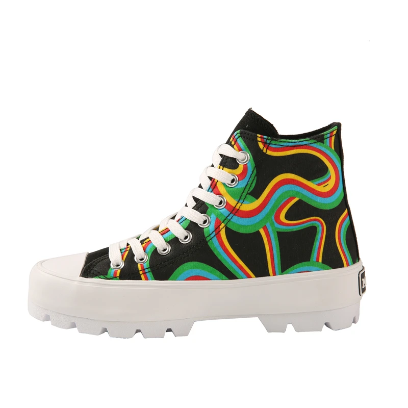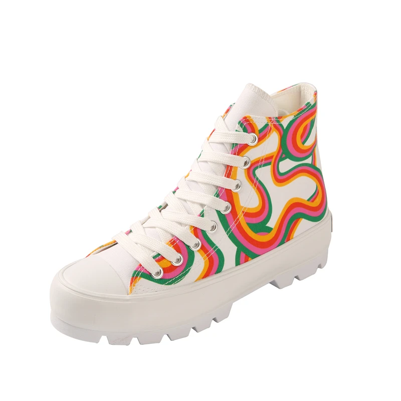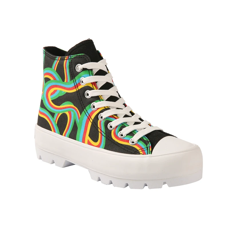 Canvas Trendy Shoes High Top Sneakers Multicolor Striped Pattern Vulcanize Shoes For Men