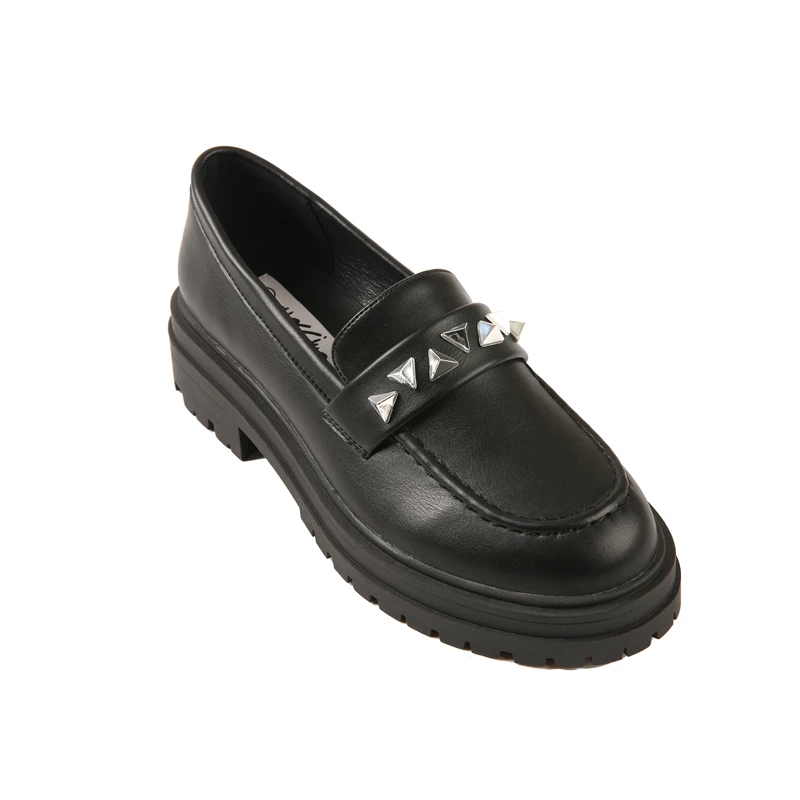 Comfortable Soft Doll Shoes For Women Flat With Silver Triangle Decoration Women Pu Flats Shoes