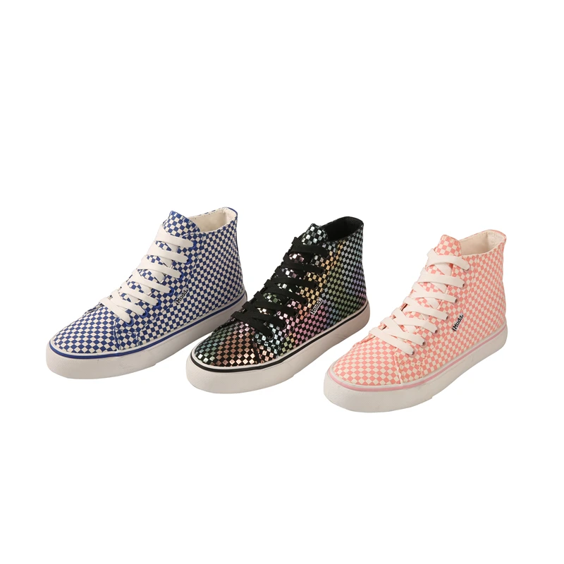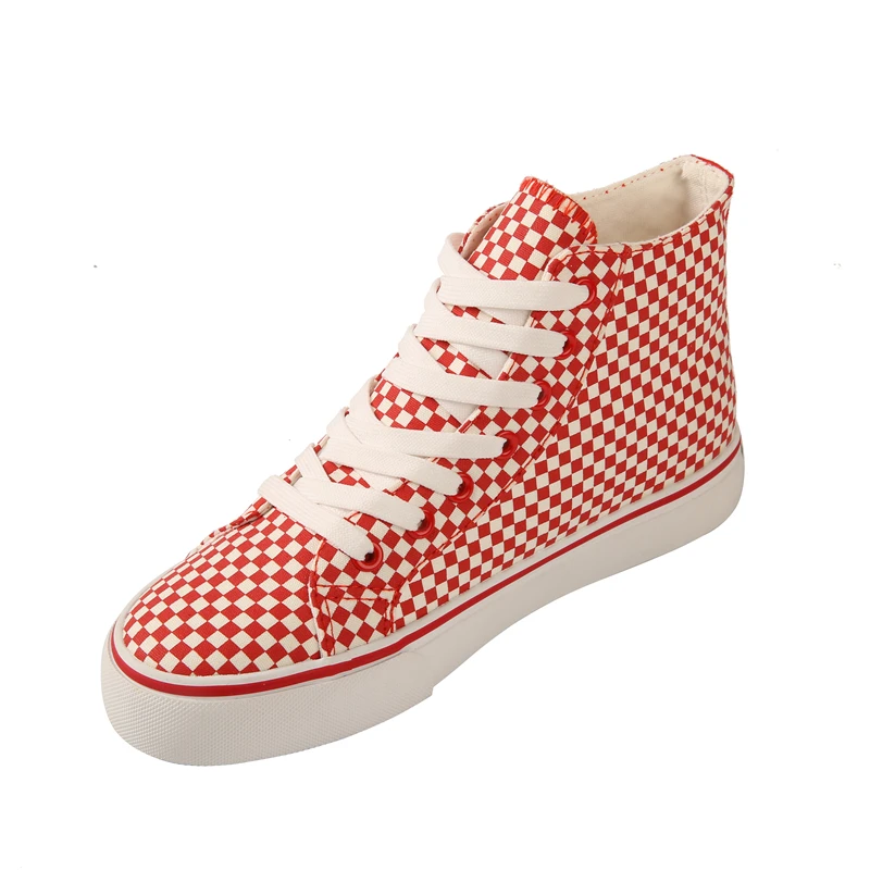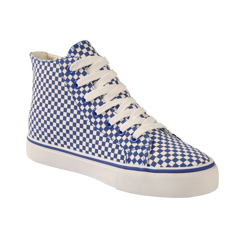 Comfortable Vulcanized Shoe Mens Casual Canvas High Top Shoe Checkered Pattern High Top Sneakers