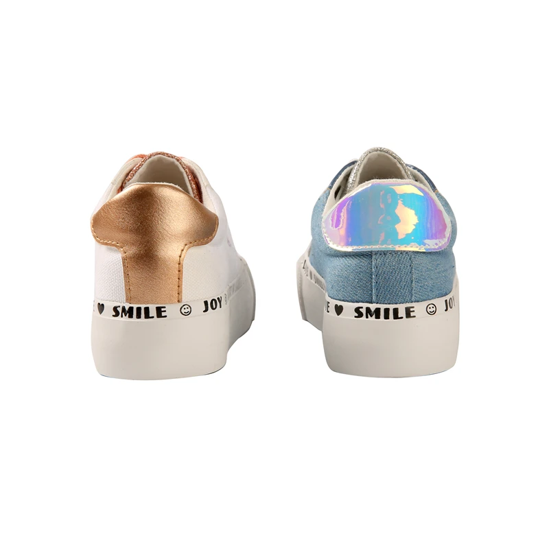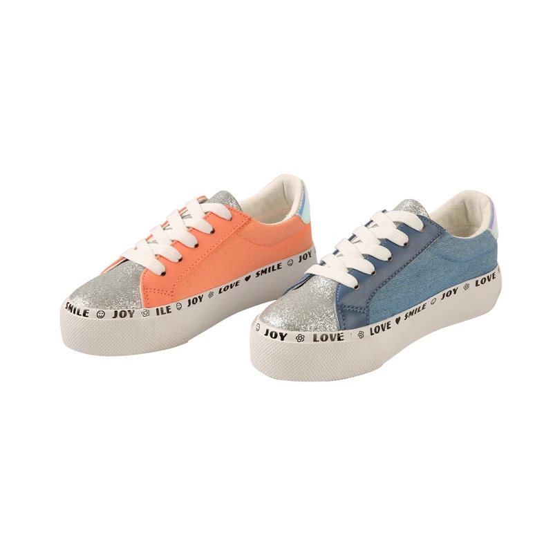 Custom Mens Shoes Vulcanized Flat Bright Face Splicing Design Low Top Canvas Laces Shoes