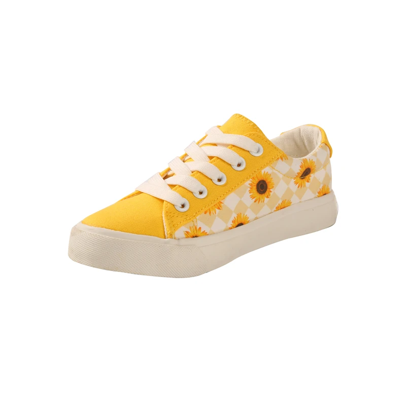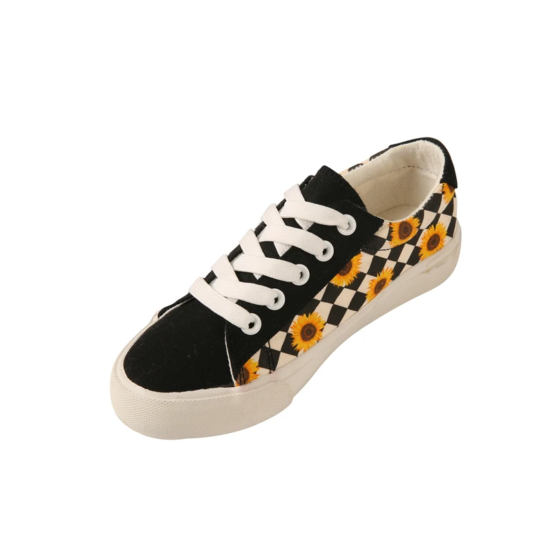 Lady Casual Sneakers Grid Checkerboard Breathable Women Walking Style Canvas Shoes