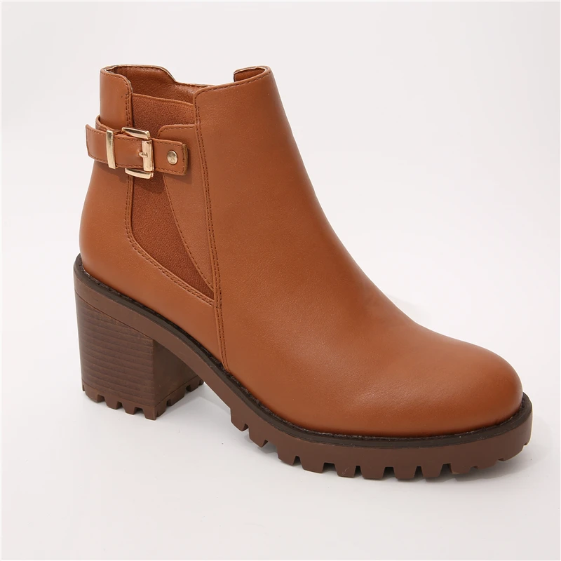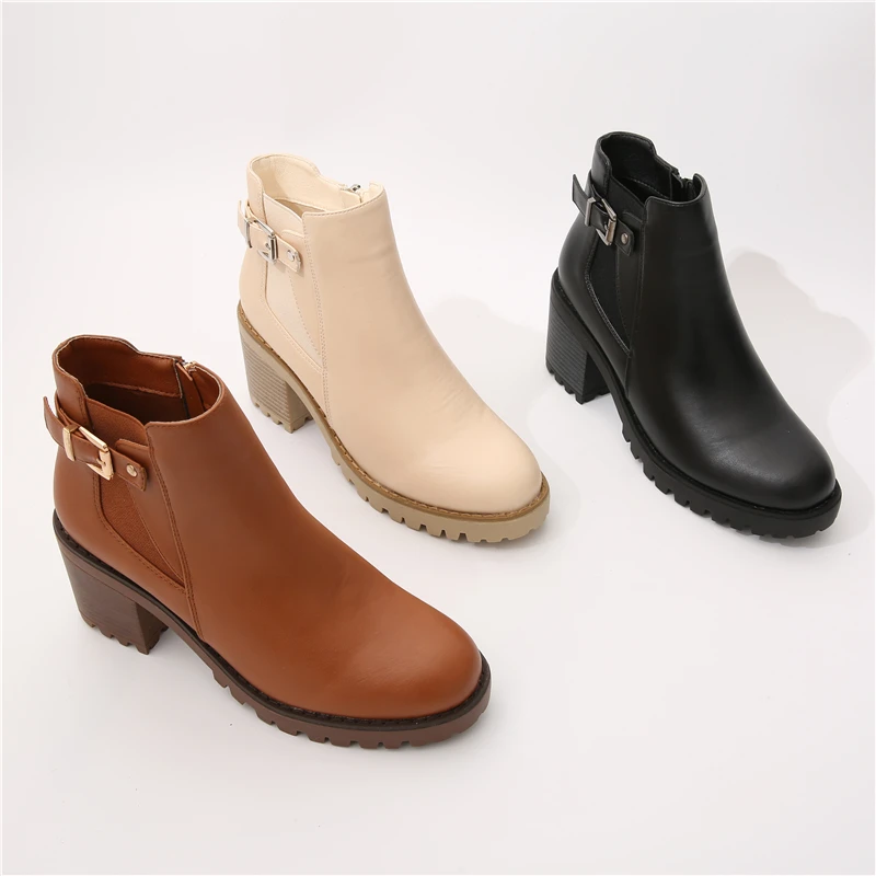 New Design Outdoor Walking Martin Boots Thickening Chunky Heel Ankle Boots with Buckle