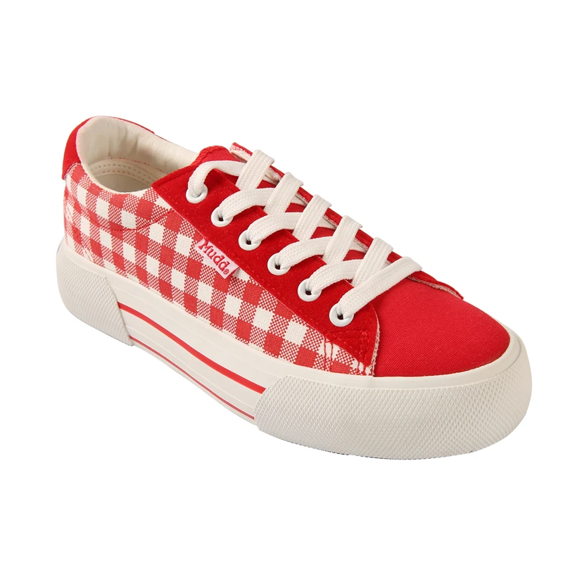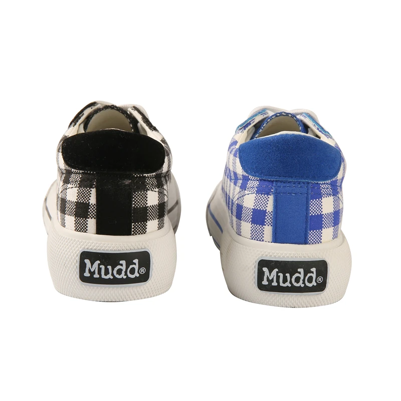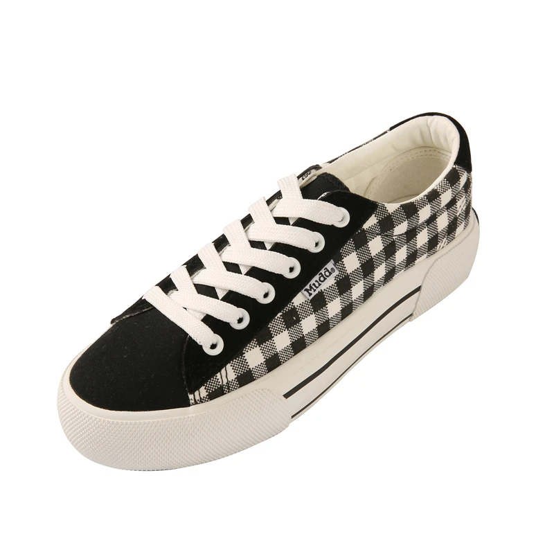 Round Toe Men Low Top Canvas Shoes Grid Checkerboard Vulcanized Canvas Flat Shoes Sneakers