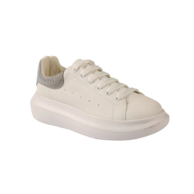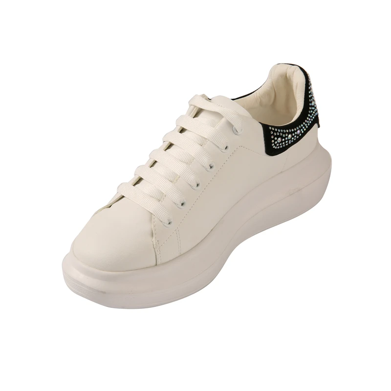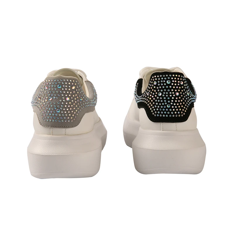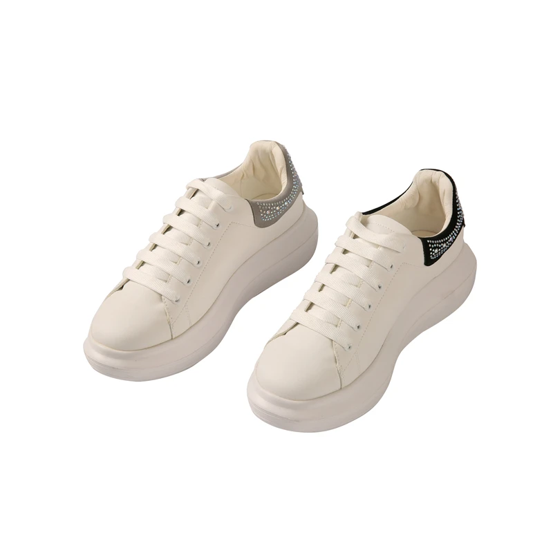 White Style Women Sneakers Cushion Shoes Casual Lace Up White Sequin Fashion Shoes